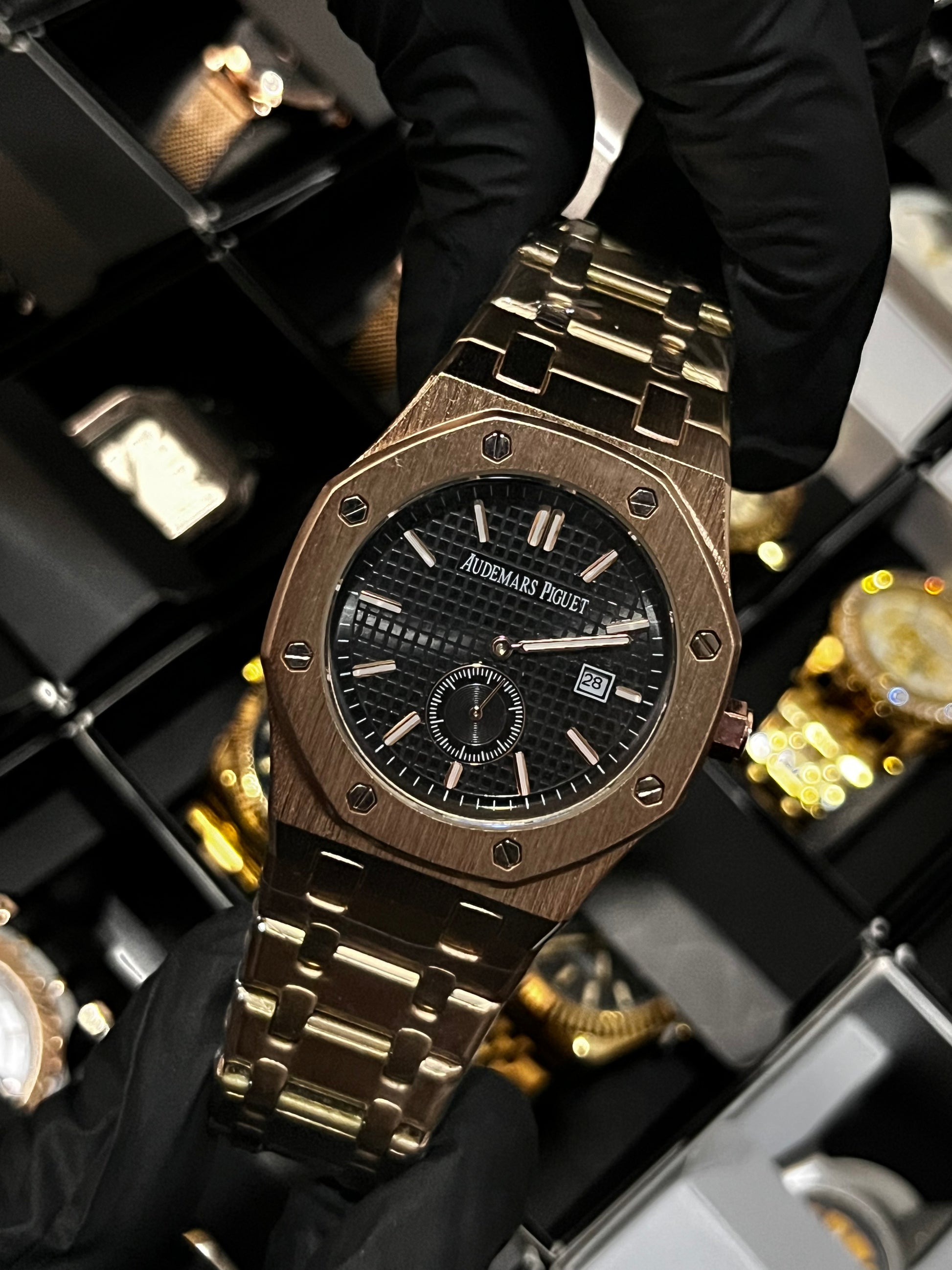ADMR METÁLICO / CRONO SEGUNDERO / ORO ROSA FONDO NEGRO