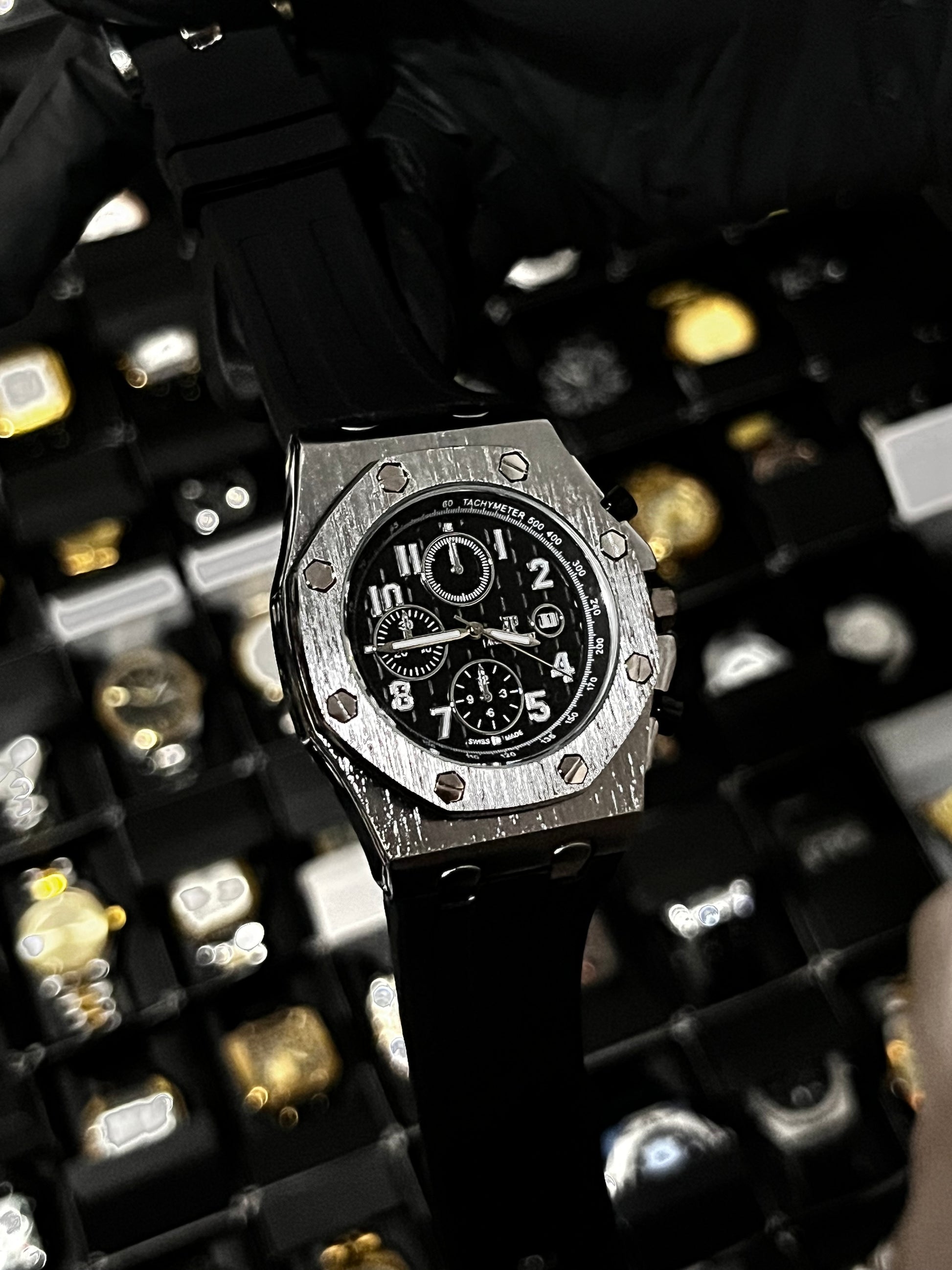 ADMR GOMA/NEGRO TABLERO/NEGRO/3 CRONOS BISEL/PLATEADO