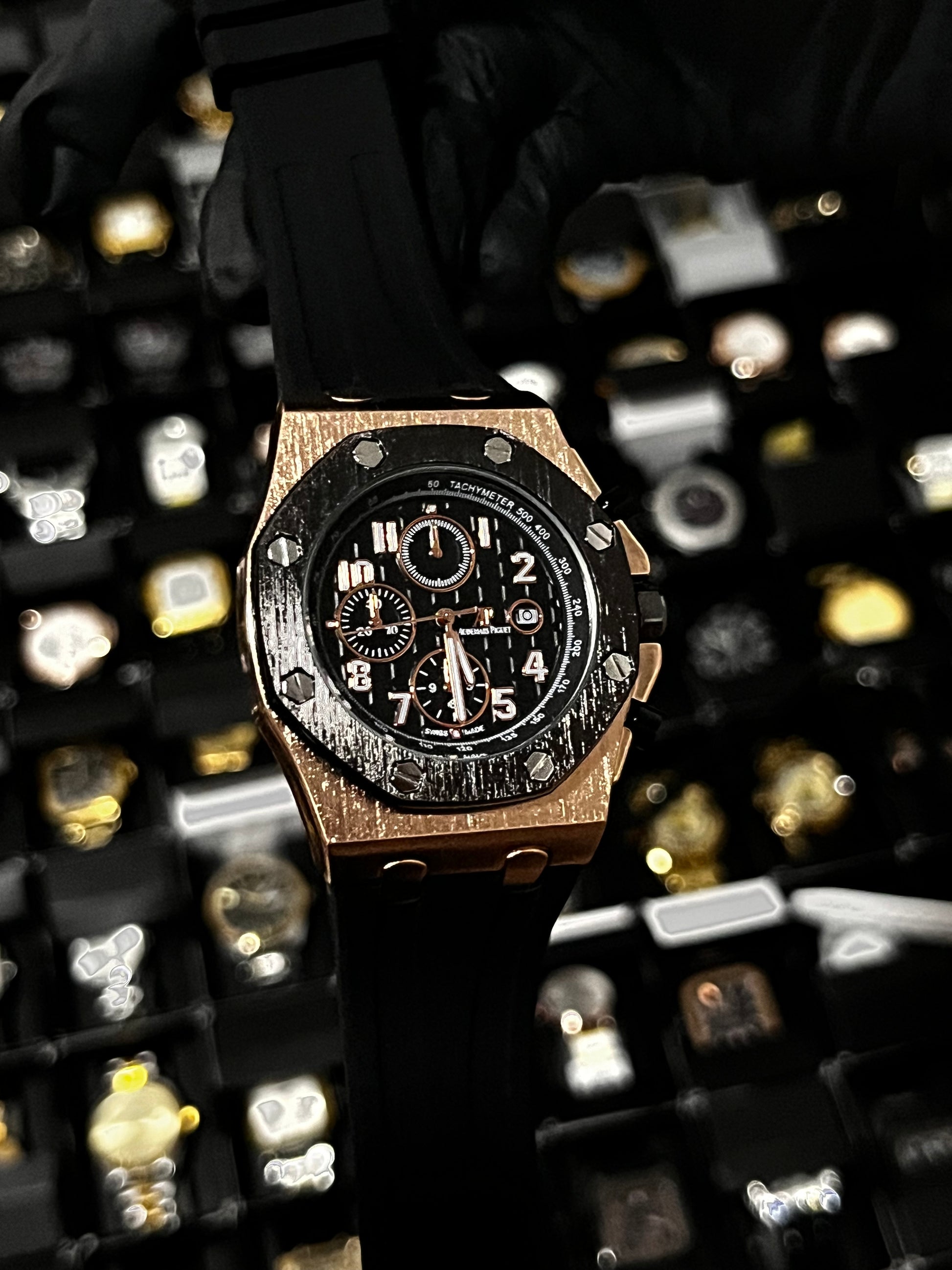 ADMR GOMA/NEGRO TABLERO/NEGRO/3 CRONOS BISEL/DORADO/NEGRO