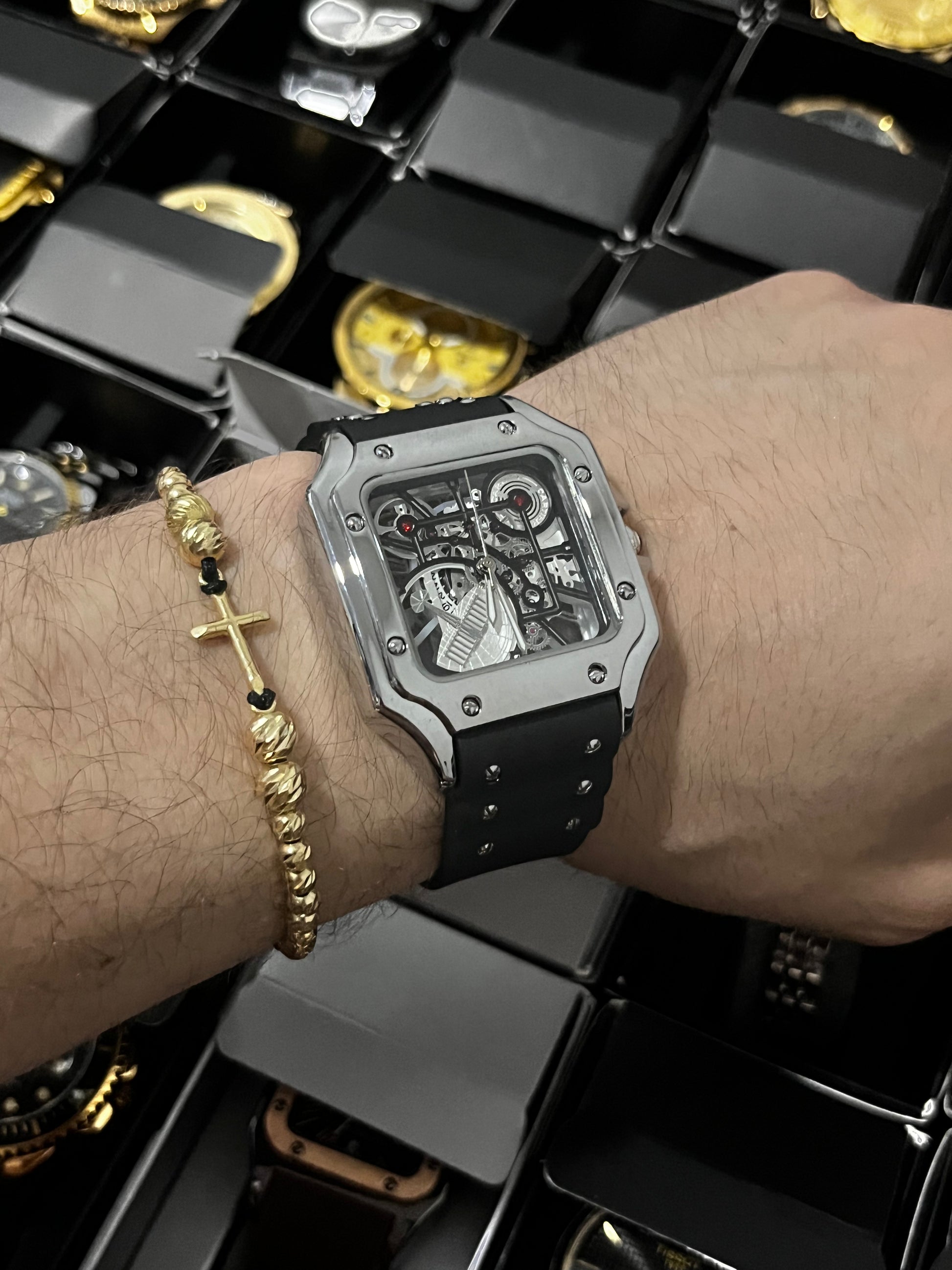 CRTR GOMA/NEGRO TABLERO/SKELETON/NEGRO BISEL/PLATEADO