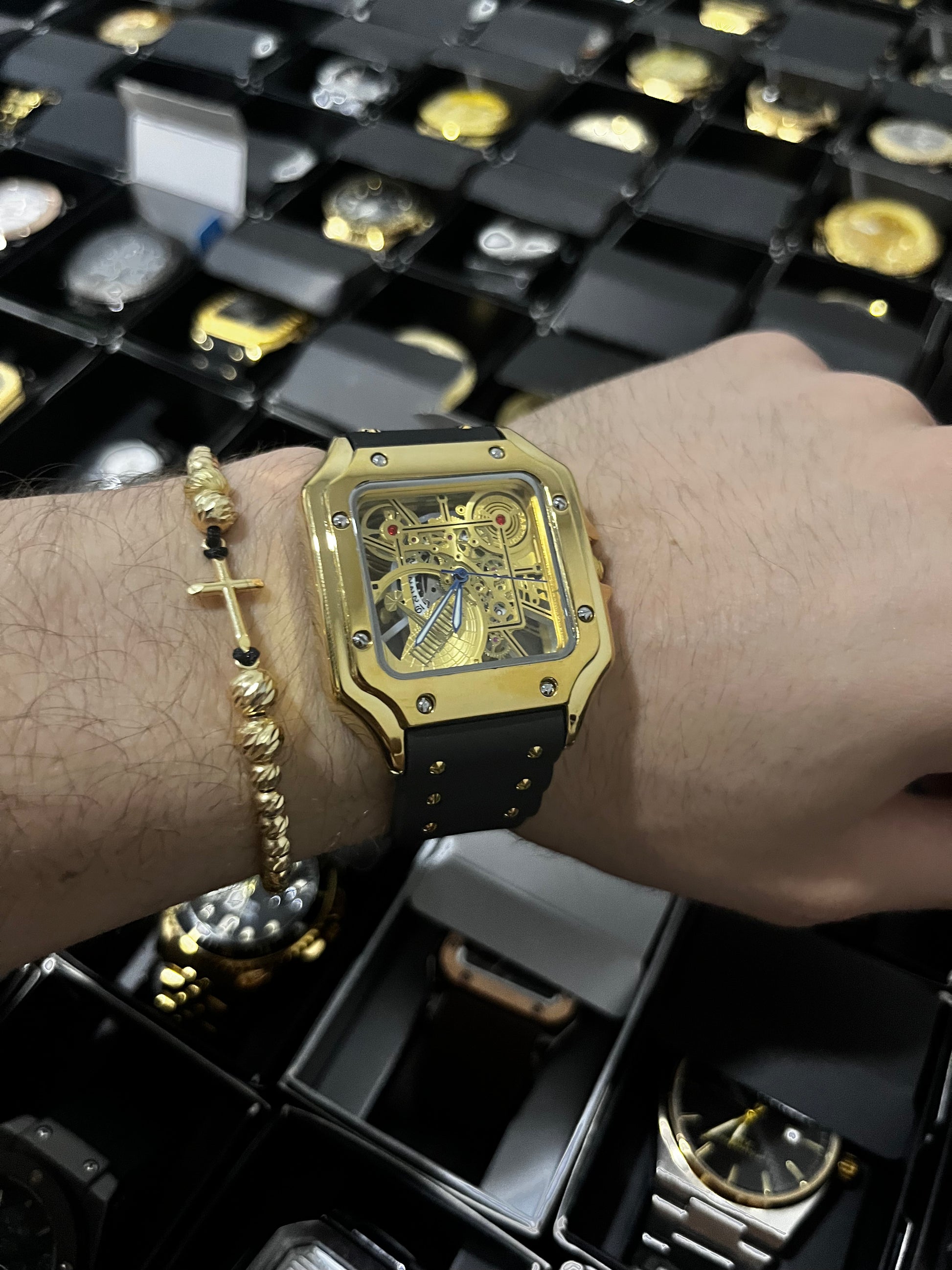 CRTR GOMA/NEGRO TABLERO/SKELETON/DORADO BISEL/DORADO