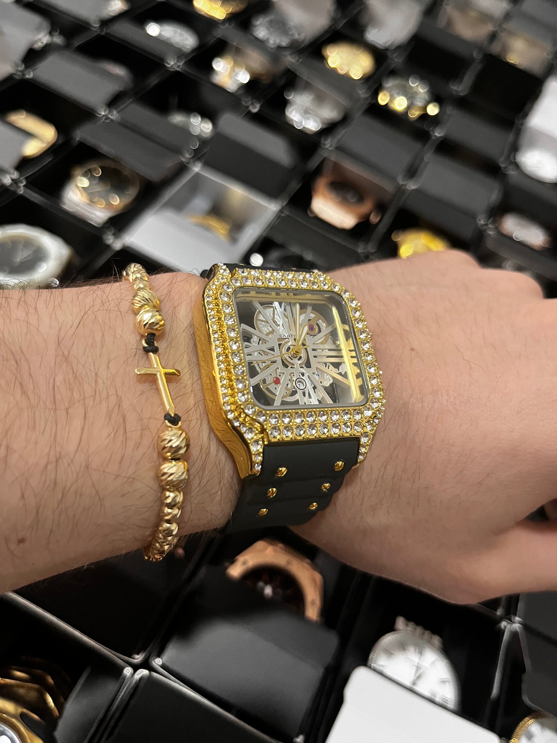 CRTR GOMA/NEGRO TABLERO/SKELETON/BLANCO BISEL/CUBANO/DORADO