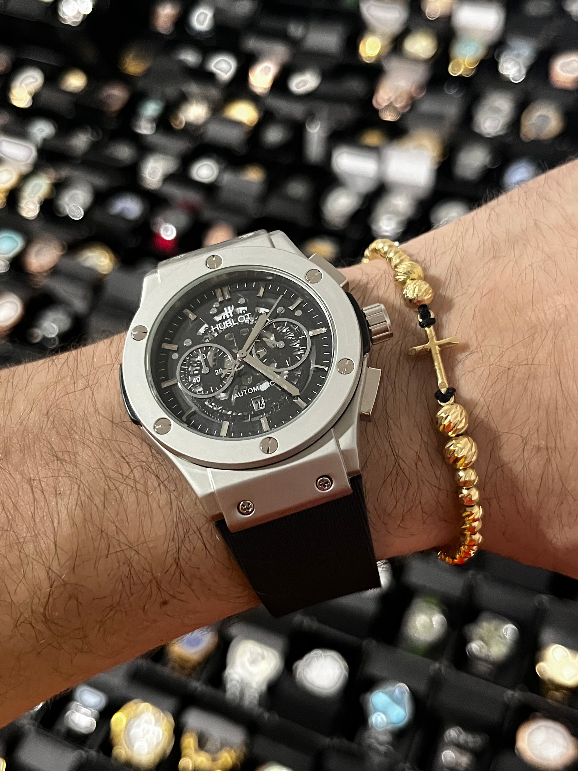 HBLT CRONO / PLATEADO PULSO NEGRO