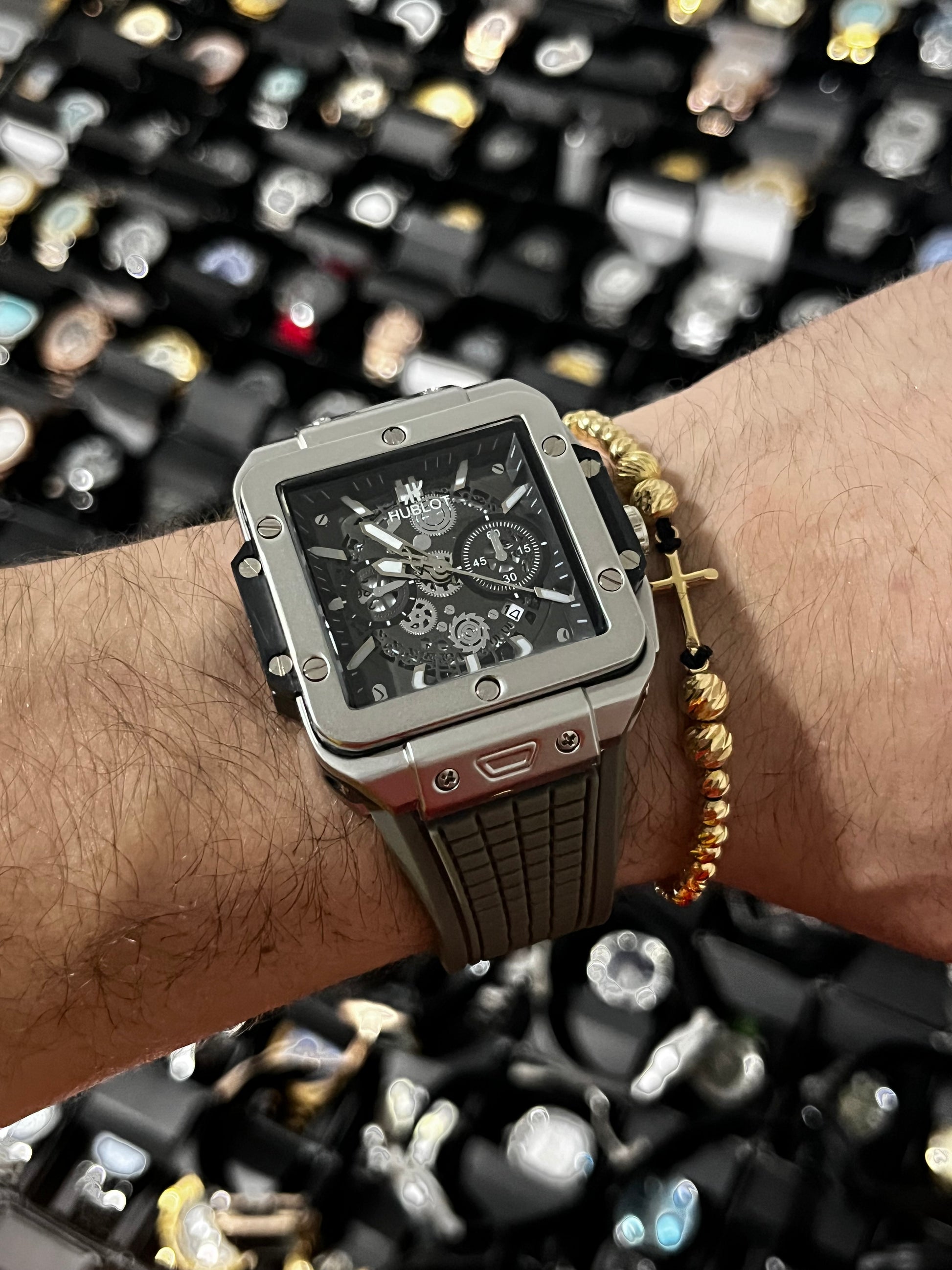 HBLT CUADRADO / PLATEADO / PULSO GRIS