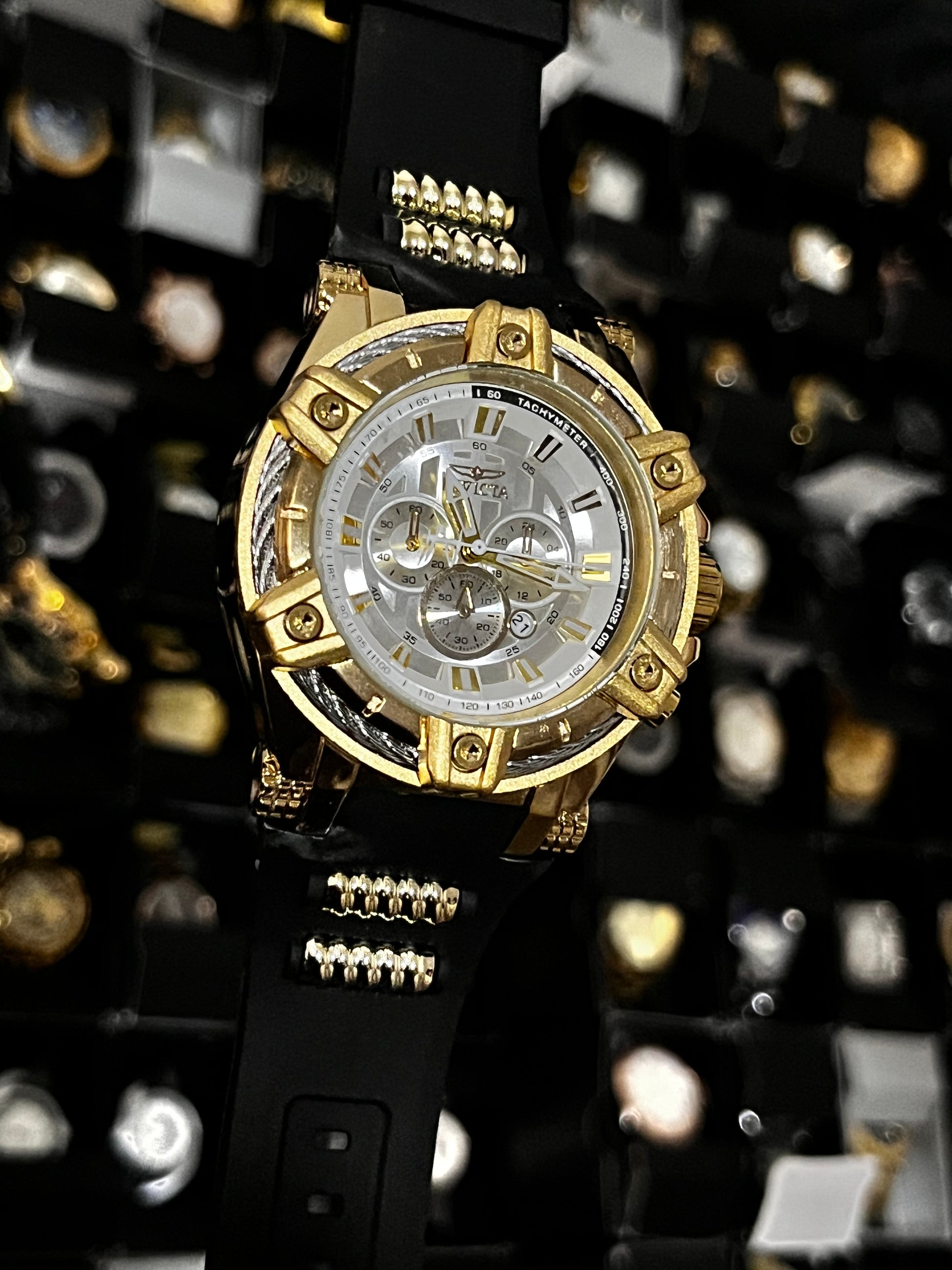 INVIC BOL / PULSO GOMA NEGRO / BISEL DORADO / TABLERO BLANCO