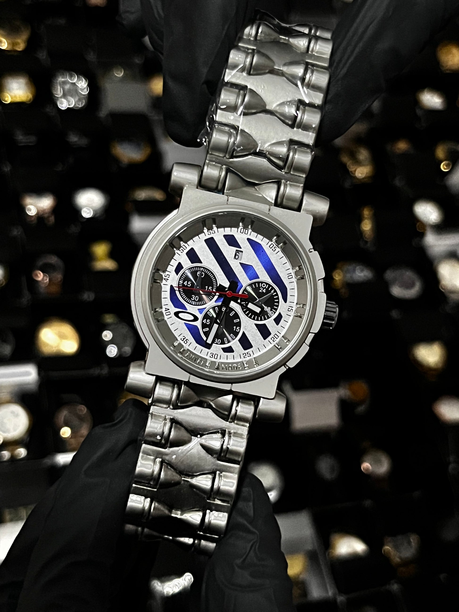 OAK ACERO/PLATEADO TABLERO/AZUL/BLANCO/3 CRONOS BISEL/PLATEADO