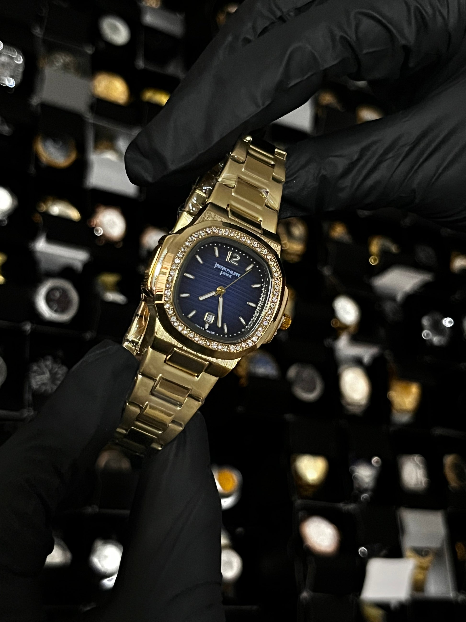 PTK METAL / DAMA / BISEL CUBANO / DORADO FONDO AZUL OSCURO