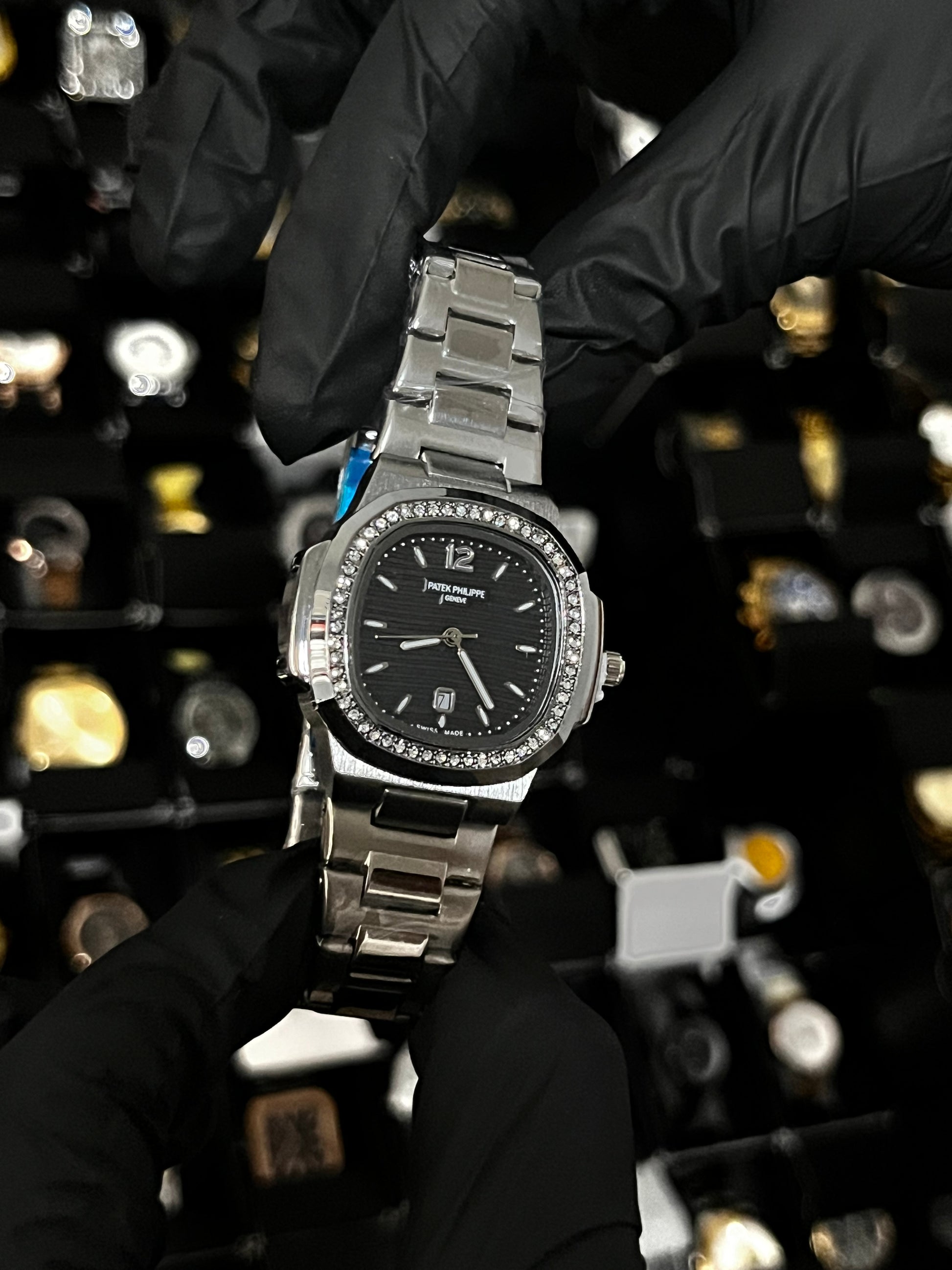 PTK METAL / DAMA / BISEL CUBANO / PLATEADO FONDO NEGRO