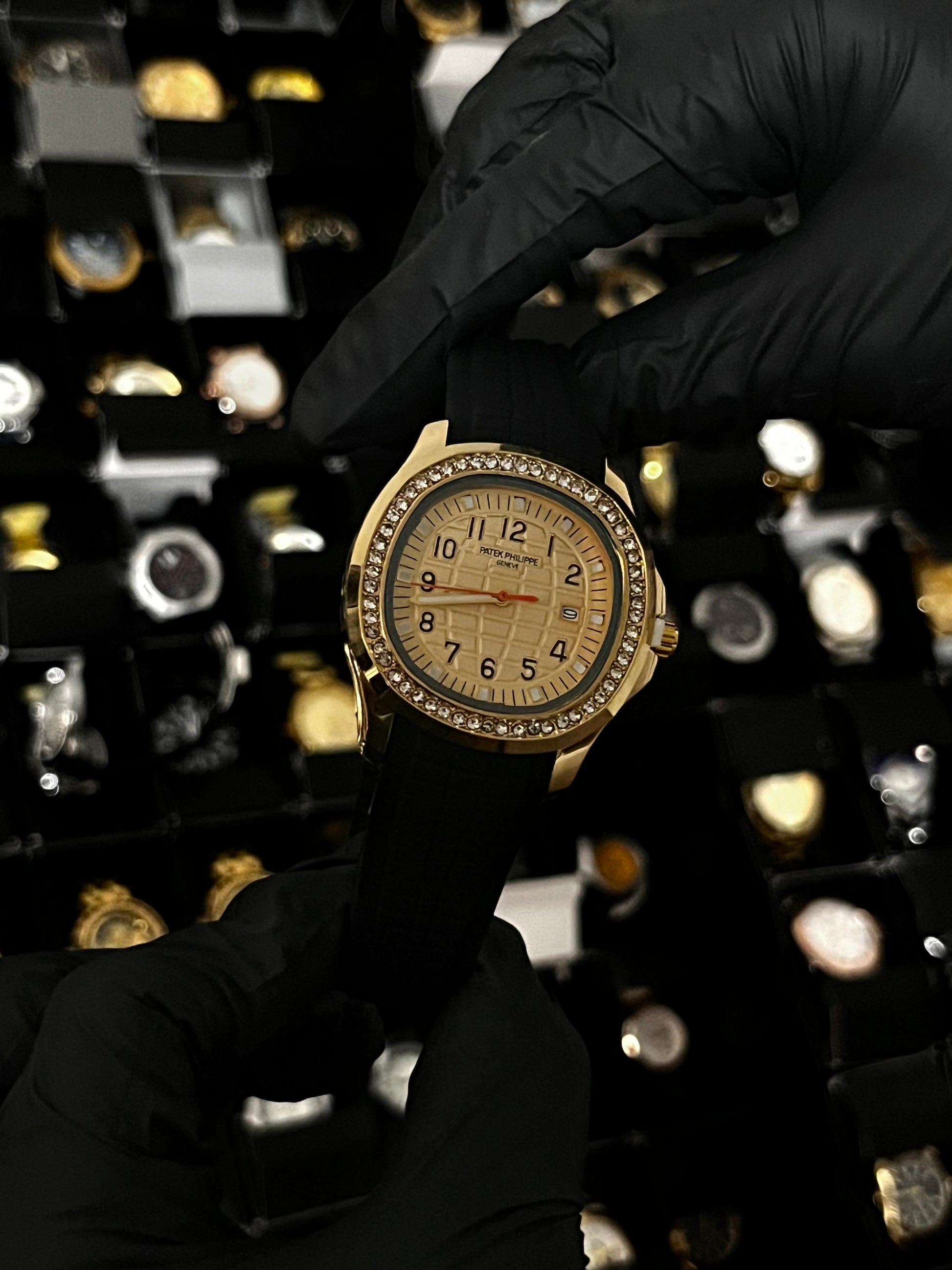 PTK PULSO GOMA CUBANO / NEGRO / TABLERO DORADO