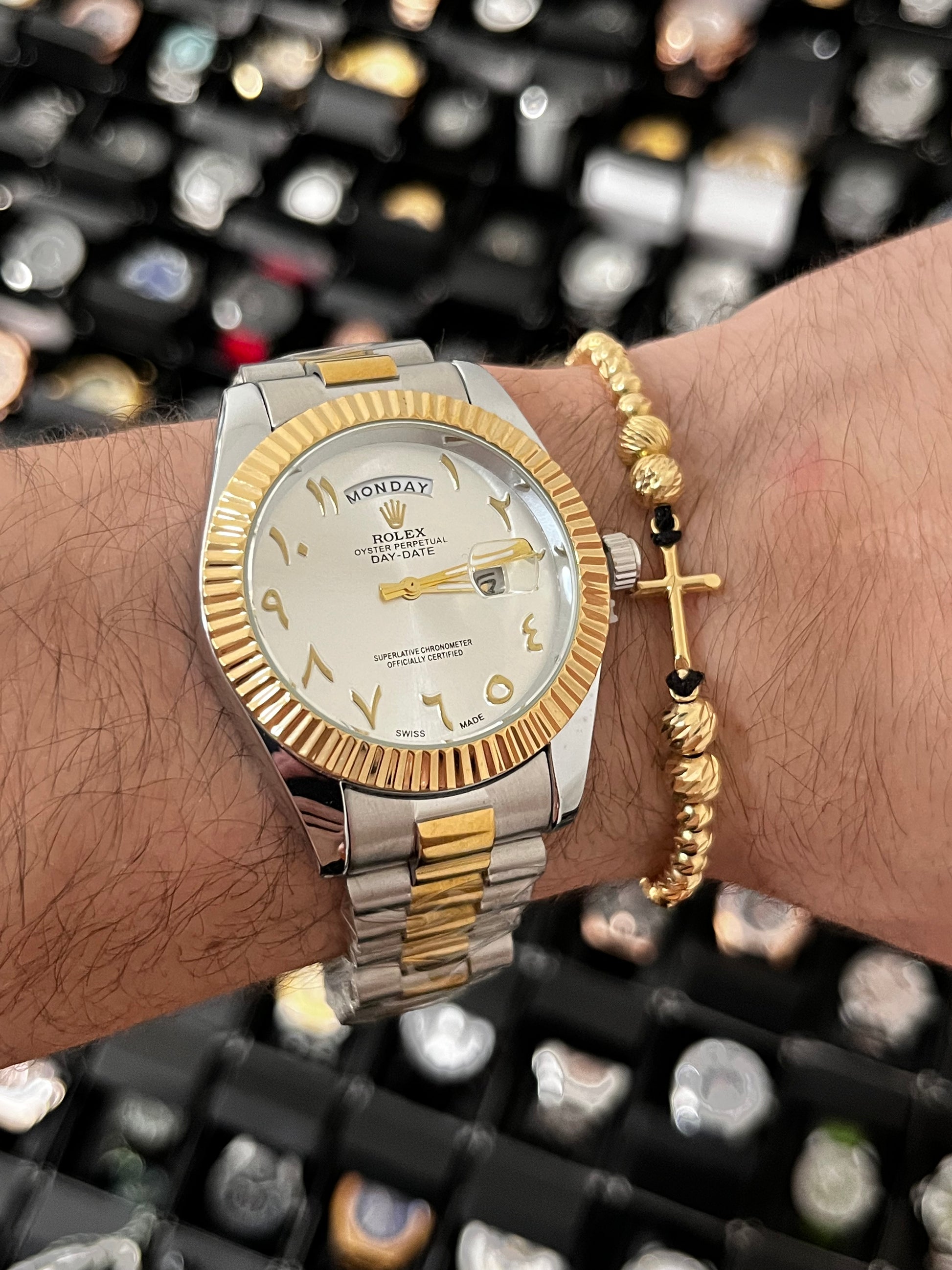 RX DTJST DD ARAB / BISEL RELIEVE / BICOLOR FONDO PLATEADO