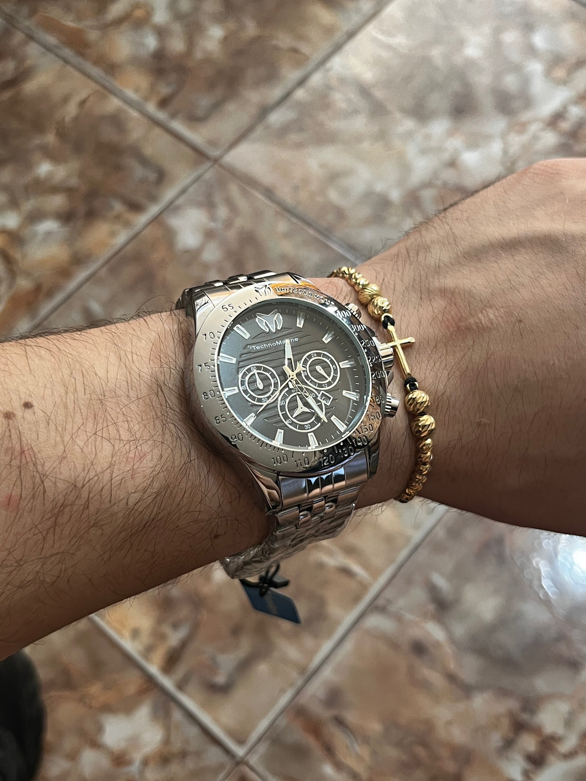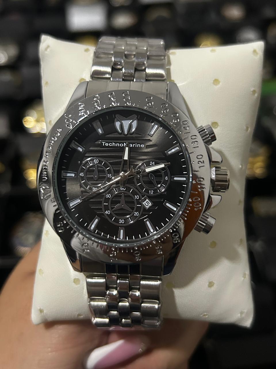 TECH M ACERO PLATEADO TABLERO NEGRO/3 CRONOS BISEL PLATEADO