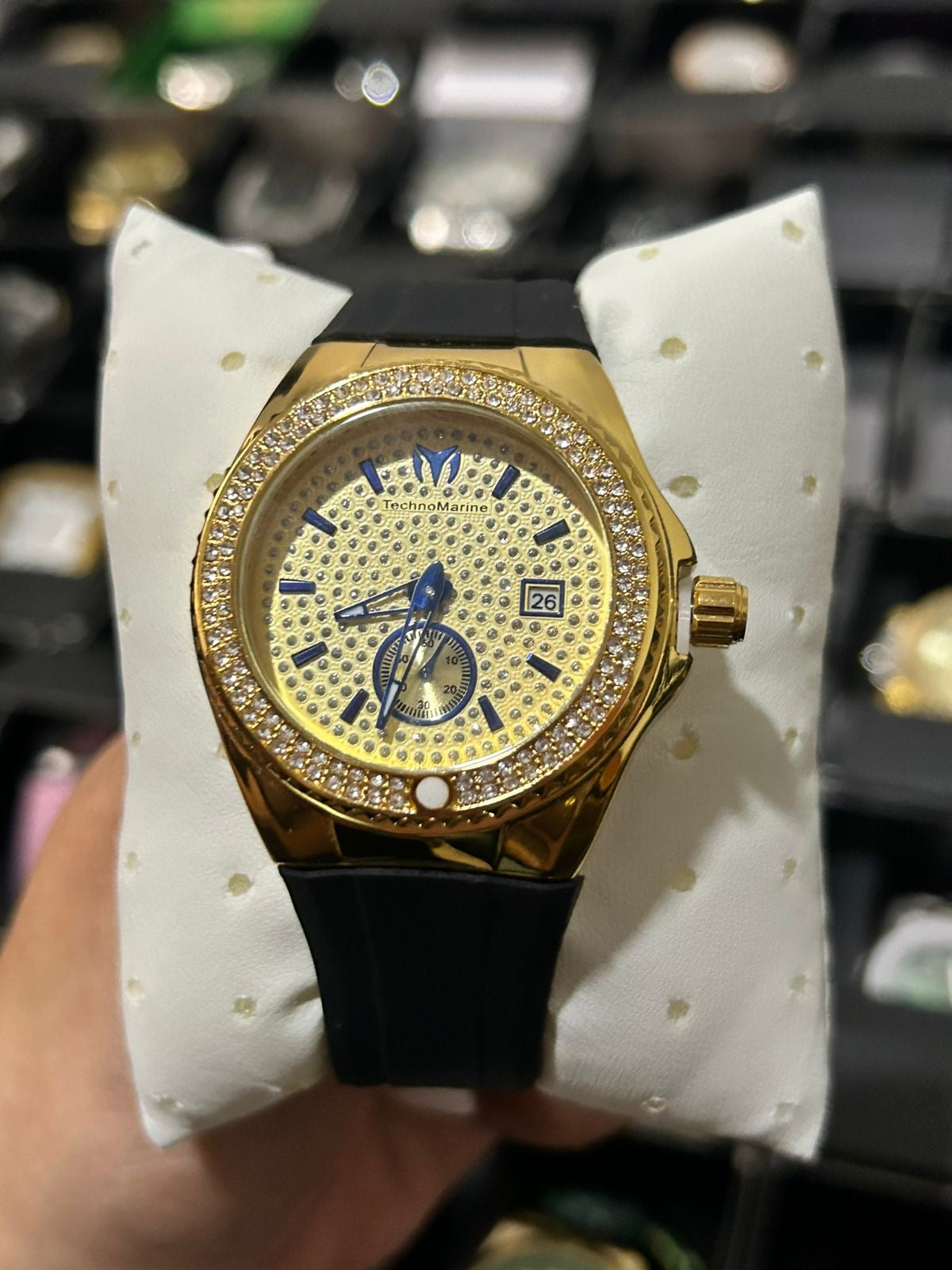 TECH. M DAMA GOMA NEGRO TABLERO DORADO BISEL DORADO/CUBANO
